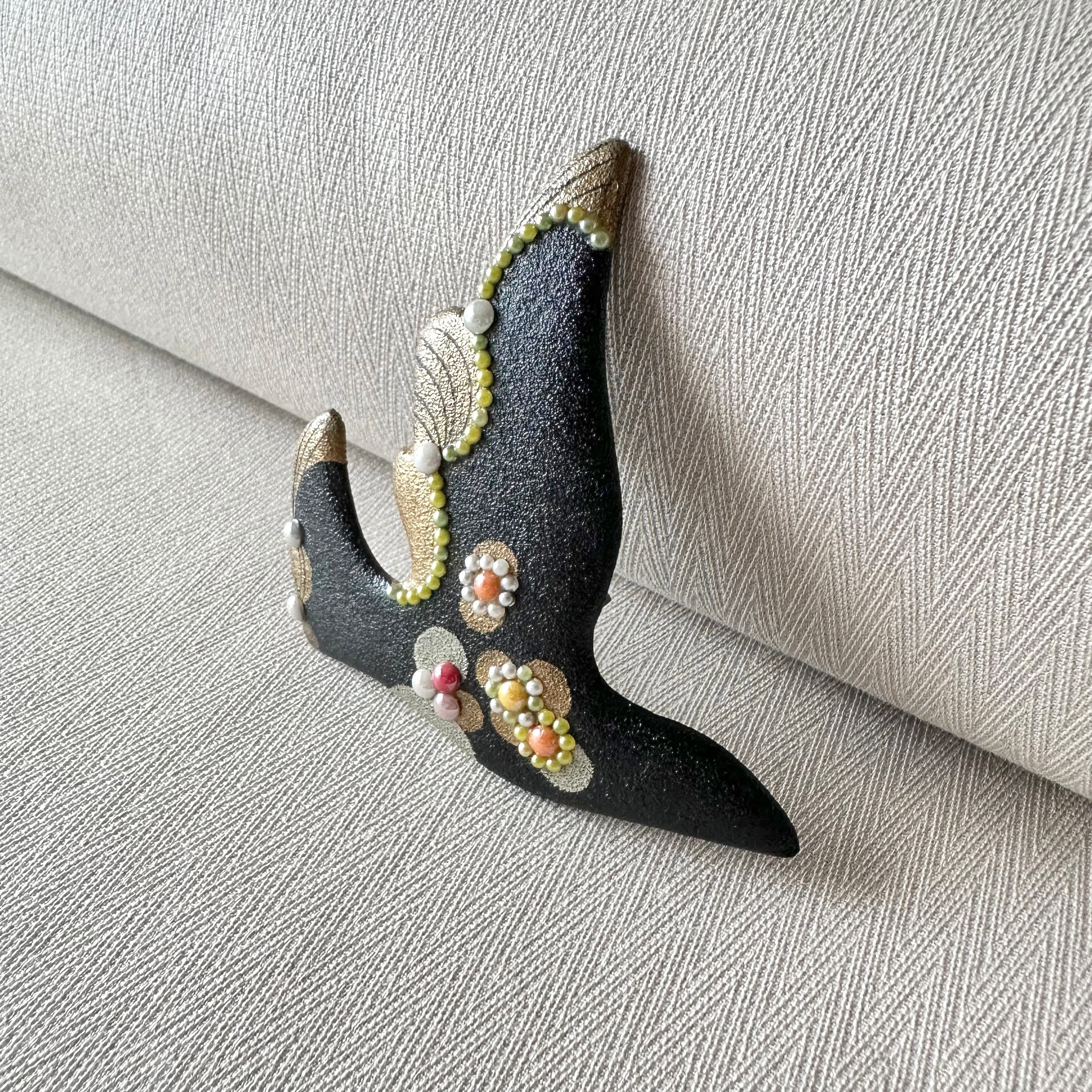 【越久米作】(こしのくめさく)さんの漆ブローチ。
